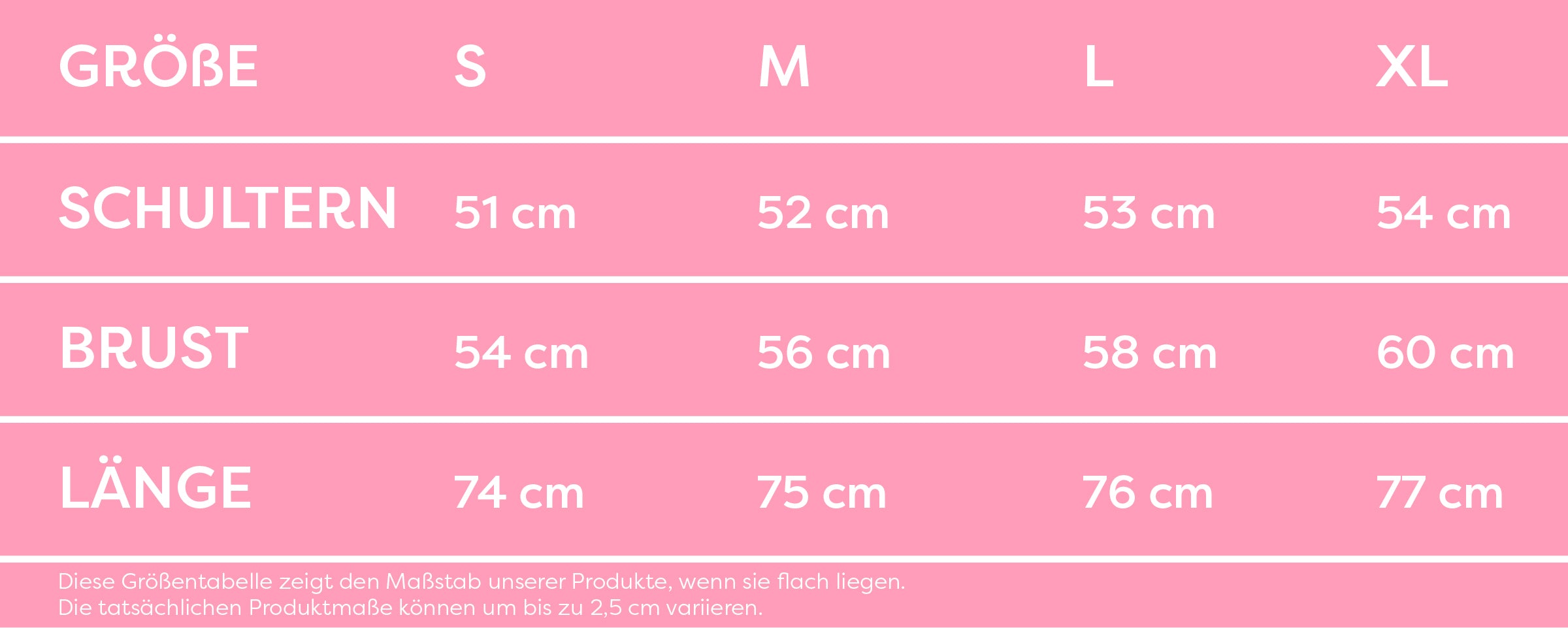 Unsere T-Shirts sind Unisex. Die Größentabelle zeigt alle Größeneigenschaften.
