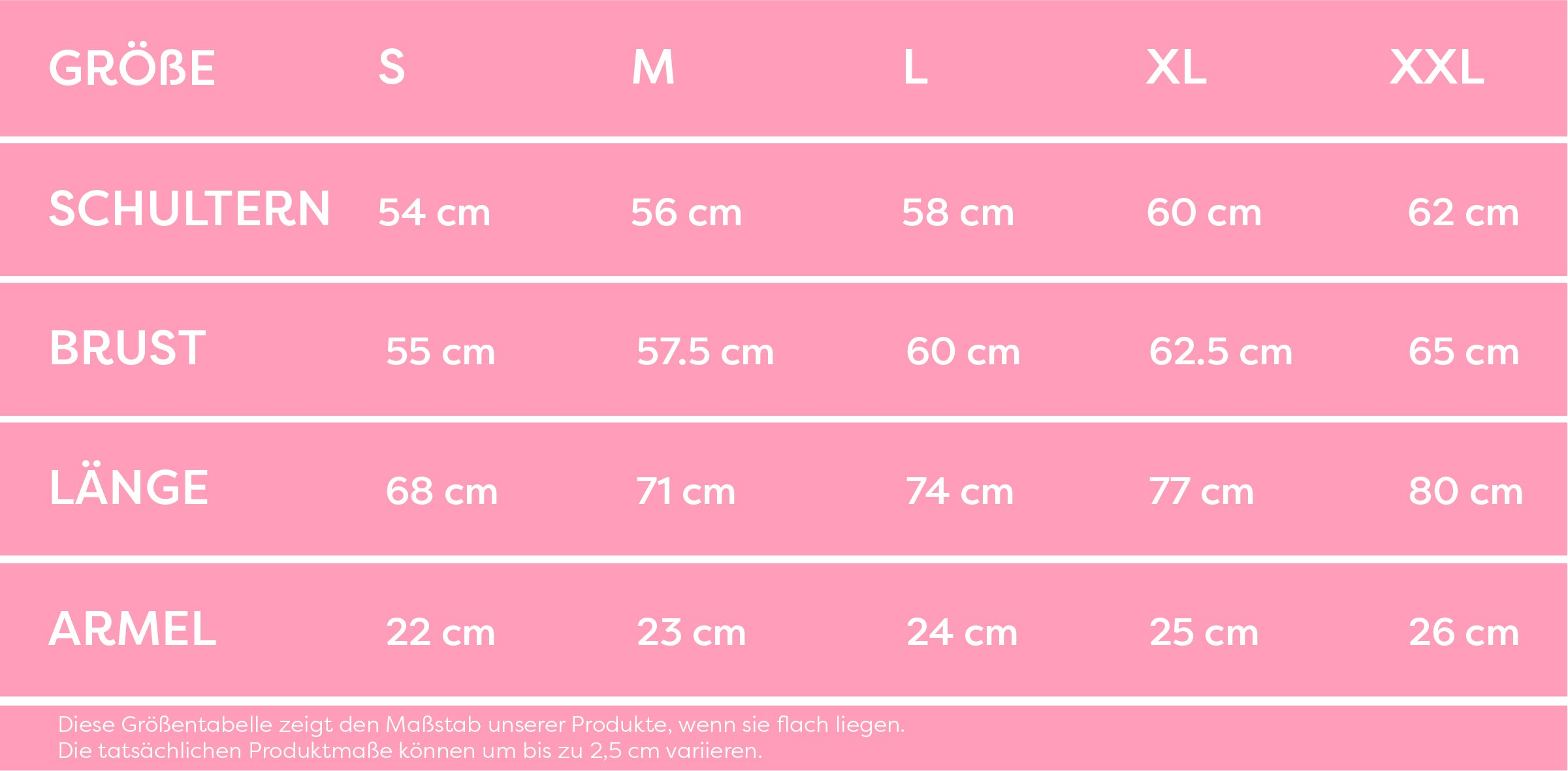 Unsere T-Shirts sind Unisex. Die Größentabelle zeigt alle Größeneigenschaften.